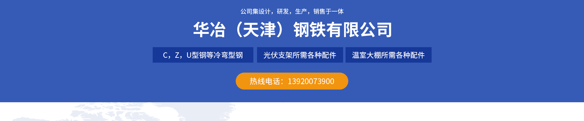 華冶(天津)鋼鐵有限公司坐落在中國(guó)鋼管生產(chǎn)基地天津市靜海區(qū)大邱莊工業(yè)園區(qū),公司注冊(cè)資金1000萬(wàn)元。我公司致力于太陽(yáng)能光伏支架、溫室大棚骨架的設(shè)計(jì),研發(fā),生產(chǎn),銷(xiāo)售。作為天津冷彎行業(yè)企業(yè)之一,我們具備優(yōu)秀的技術(shù)團(tuán)隊(duì),精良的生產(chǎn)設(shè)備,擁有寬闊的生產(chǎn)場(chǎng)地,專(zhuān)業(yè)生產(chǎn)C,Z,U型鋼等冷彎型鋼,及光伏支架、溫室大棚所需各種配件。